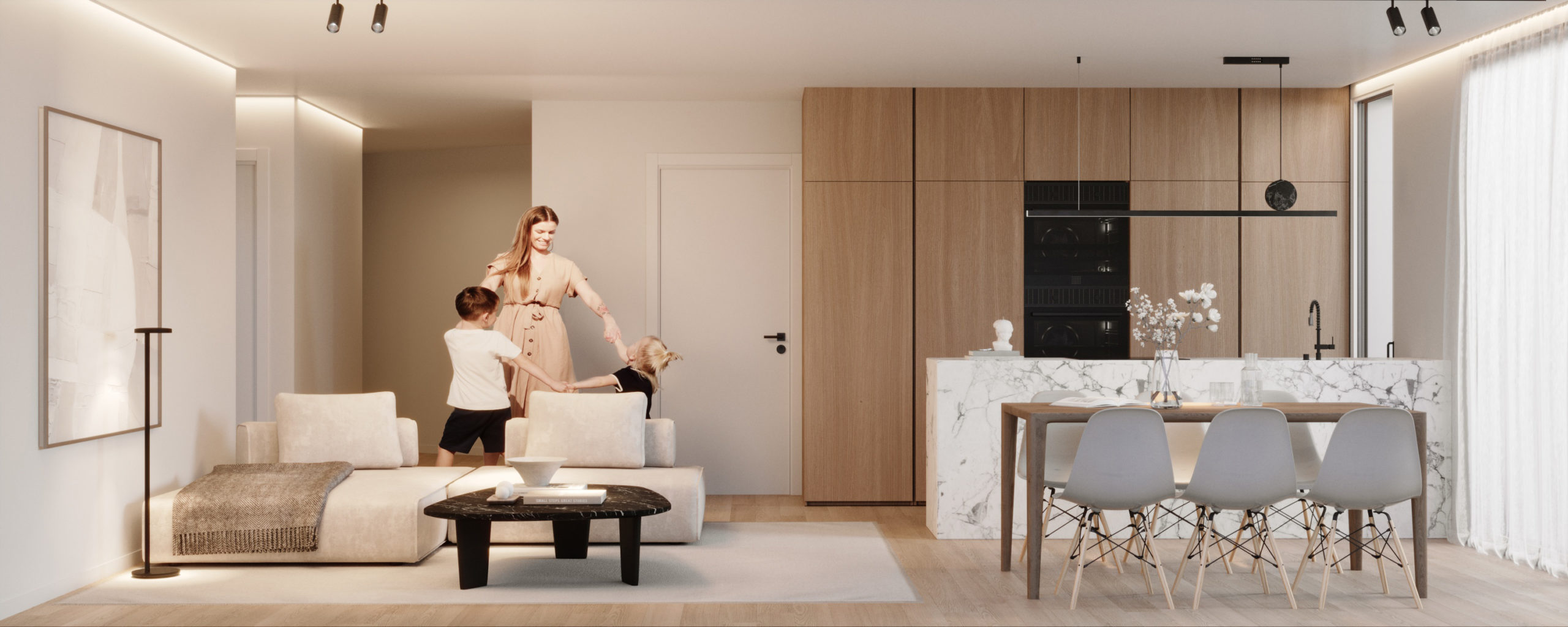 Les garde-corps en verre transparents apportent une touche de modernité. Les grandes baies vitrées, omniprésentes dans chaque appartement, assurent une luminosité naturelle abondante et offrent une belle vue sur les montagnes. Pour renfoncer son originalité, un porte-à-faux à l’Est du bâtiment a été imaginé.